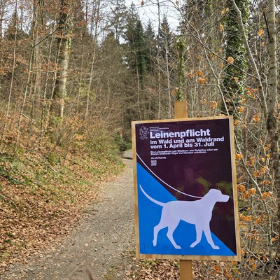 Während der Brut- und Setzzeit der Wildtiere gilt im Kanton Zürich vom 1. April bis 31. Juli 2026 eine Leinenpflicht für Hunde im Wald und am Waldrand. Freilaufende Hunde können für am Boden brütende Vögel sowie für Wildtiere mit Jungtieren eine tödliche Gefahr darstellen. Aber auch Spaziergänger:innen werden gebeten, die Wanderwege nicht zu verlassen.